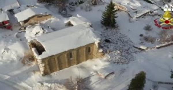 Quel che resta di Amatrice, sommerso dalla neve: il video del drone