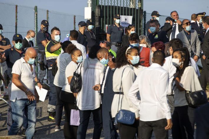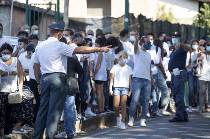 Sono già centinaia le persone in fila per entrare al campo sportivo di Paliano, in provincia di Frosinone, dove tra circa un’ora inizieranno i funerali di Willy Monteiro Duarte, il giovane assassinato a Colleferro. Anche i parenti del ragazzo sono arrivati, in lacrime: sull'auto una fotografia del figlio ucciso. Familiari e amici indossano maglie e camicie bianche, come la maggior parte dei partecipanti: è stata una richiesta della famiglia del giovane, come «segno di purezza e di gioventù» aveva riferito il sindaco di Paliano. Nel campo sportivo, in attesa dell’inizio della cerimonia, moltissimi ragazzi sulle sedie in plastica disposte sul manto erboso con maglie bianche e la scritta 'Ciao Willy'. Alle esequie sono attesi, tra gli altri, il presidente del Consiglio Giuseppe Conte e il governatore del Lazio Nicola Zingaretti.