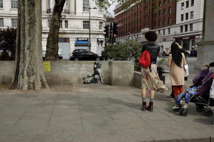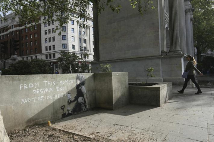 Una traccia che alimenta le voci che il writer più famoso (e inafferrabile) del pianeta possa aver partecipato di persona - in incognito - a qualcuna delle dimostrazioni. A testimoniarlo è il murale, riconducibile alla sua mano, comparso di notte proprio in una strada a ridosso di Marble Arch: cuore della protesta e sede di uno degli accampamenti dei manifestanti più irriducibili. Il disegno mostra una bambina col capo velato e accanto uno slogan: "From this moment despair ends and tactics begin".