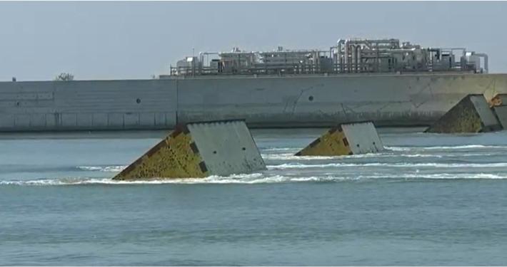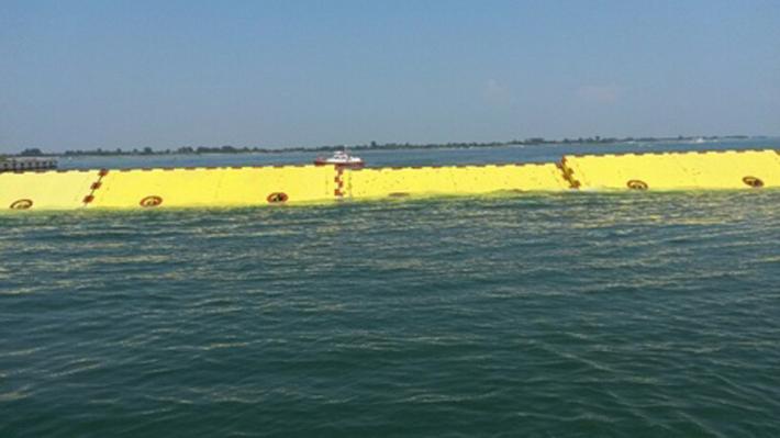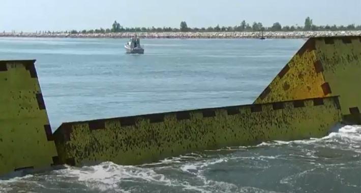 Paratoie gialle compaiono dall'acqua - Iniziano a spuntare dall’acqua le grandi paratoie gialle del Mose, che poco fa, con il via dato dal premier Conte, hanno iniziato il sollevamento nella prova generale e alle tre bocche di porto. I parallelepipedi stanno emergendo piano dal fondale. Quando la schiera sarà completata verrà separata fisicamente la laguna di Venezia dal mare aperto.