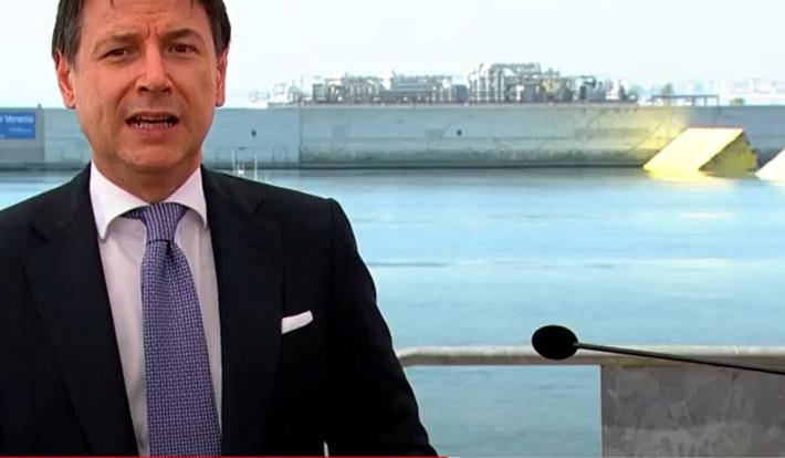 Da control room su isola artificiale bocca porto del Lido - Il presidente del consiglio Giuseppe Conte, dalla control room nell’isola artificiale del Lido, ha premuto il pulsante che dà il via alla prova generale di innalzamento delle paratoie del Mose. Per la prima volta tutto il sistema di 78 dighe mobili entra in funzione alle tre bocche di porto del lido di Venezia, separando la laguna dal mare.
