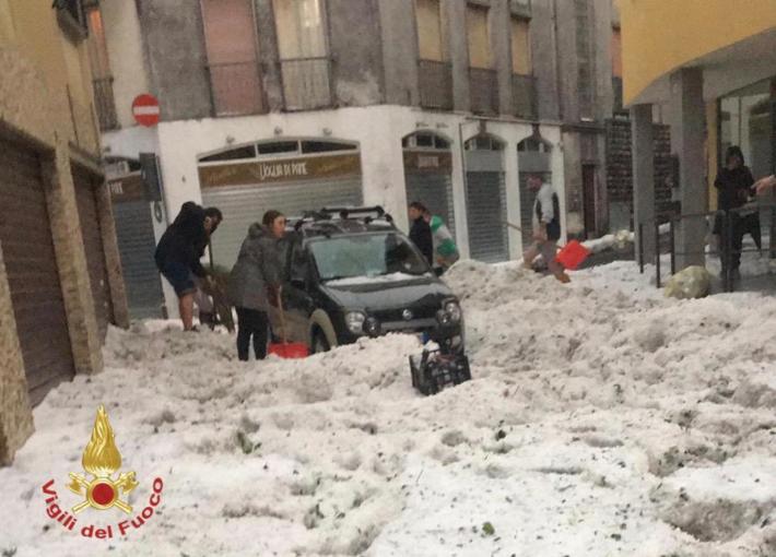 Sono state decine le uscite dei vigili del fuoco, soprattutto tra Alzano Lombardo e Nembro, in provincia di Bergamo per i danni causati dal maltempo del tardo pomeriggio, in particolare una fitta grandinata.