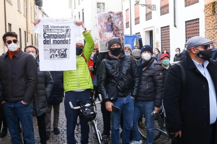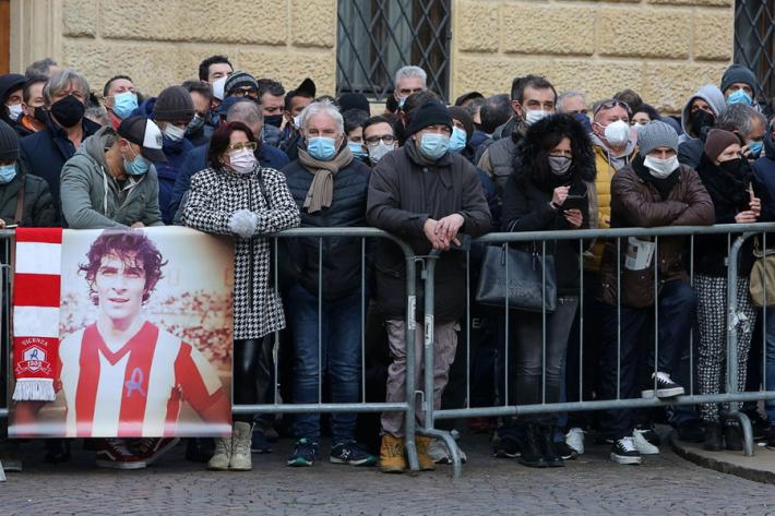 Marco Tardelli, Giancarlo Antognoni, Antonio Cabrini e Fulvio Collovati, ex compagni di nazionale di Paolo Rossi nella vittoria del Mondale '82, sono tra coloro che hanno portato il feretro di Paolo Rossi nella cattedrale di Vicenza, dove si terrà la cerimonia funebre. All’esterno i cori della gente ad intonare 'Paolo, Paolo...'. Numerose le persone che hanno voluto portare l’ultimo saluto al campione.