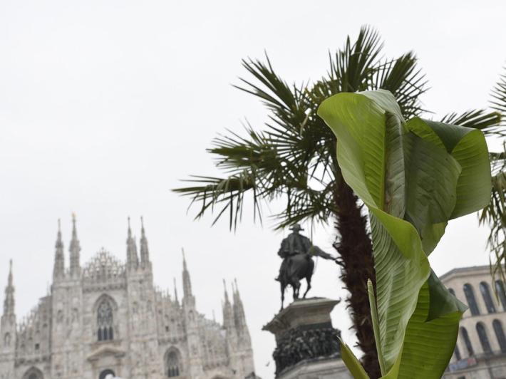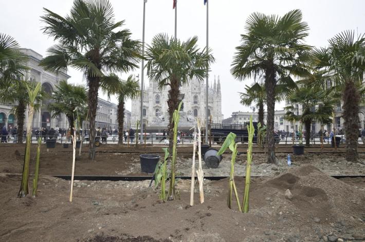 Dopo le tanto contestate palme sono arrivati in piazza del Duomo a Milano, come previsto, i banani. Gli operai sono al lavoro da questa mattina, nelle aiuole alle spalle del monumento equestre dedicato a Vittorio Emanuele II, per piantare i banani, che andranno a completare il giardino progettato dalla multinazionale del caffè Starbucks. La società, che nel 2018 arriverà a Milano con il primo store, infatti ha vinto il bando del Comune per la realizzazione e la cura delle aiuole.