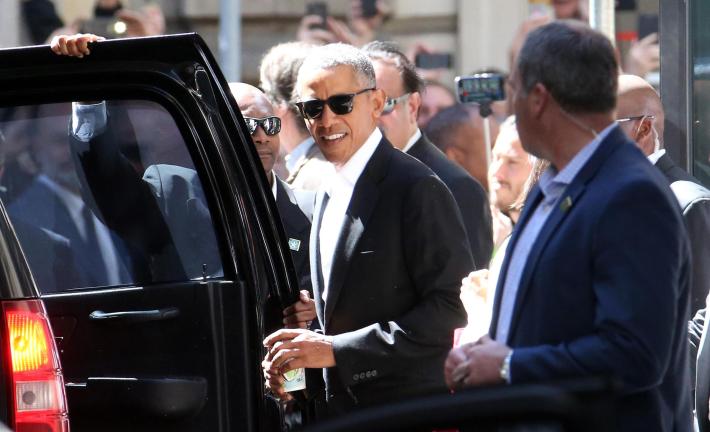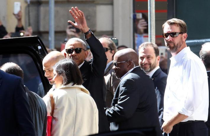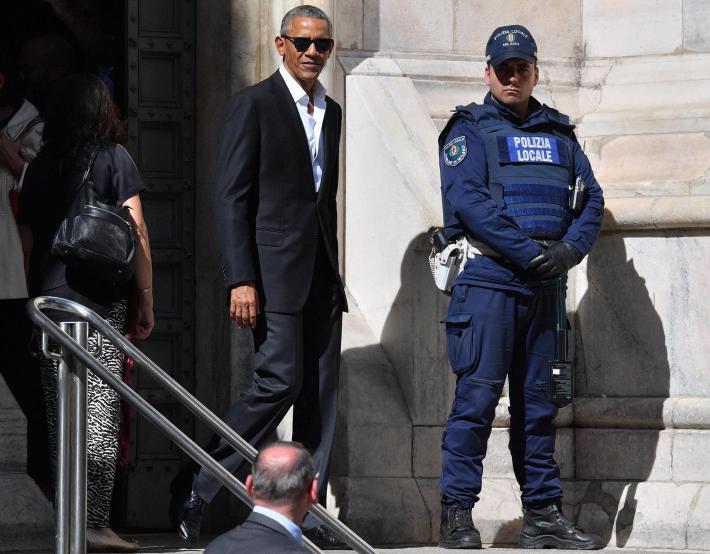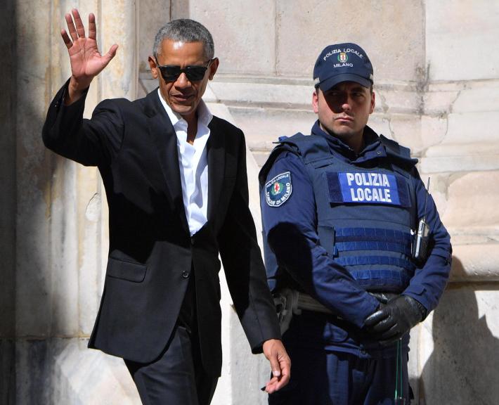 L'ex presidente degli Stati Uniti Barack Obama è arrivato oggi a Milano da Linate con un corteo di 14 auto, aperto dai poliziotti in moto e chiuso da un’auto della Polizia locale, mentre un elicottero sorvolava la zona. Code si sono fermate al suo passaggio, quando il corteo è entrato in città. Obama come prime tappe informali, dopo aver lasciato l’hotel in Gallleria dove alloggia, si è recato alla Pinacoteca Ambrosiana e al Duomo. Poi è rientrato in hotel dove ha visto Matteo Renzi. I due, oltre a questo incontro privato, si vedranno anche questa stasera a cena all’Ispi, Istituto Superiore di Politica Internazionale, dove ceneranno con sedici tra imprenditori e uomini d’affari milanesi. Domani sarà ospite d’onore alla terza edizione di Seeds&Chips, il global summit sull'innovazione.