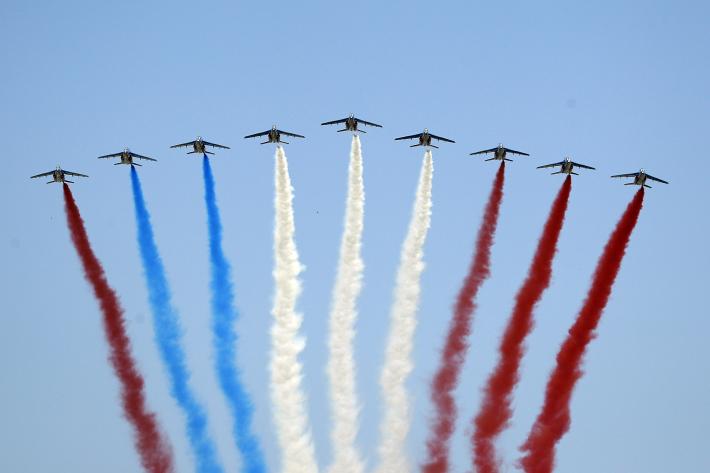 14-Juillet: la Patrouille de France ouvre le défilé aérien... avec un petit souci de couleur pic.twitter.com/hqAZzqCkzM