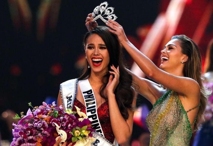 Catriona Gray, 24 anni, miss Filippine, è stata eletta Miss Universo a Bangkok, battendo le concorrenti di altri 93 paesi. Gray, che indossava un vestito rosso a suo dire ispirato da un vulcano del suo Paese, ha detto di aver scelto quel colore «perchè quando avevo 13 anni mia madre sognò che diventavo Miss Universo e che portavo un vestito rosso». Gray è stata eletta da una giuria di sole donne, per la prima volta nella storia del concorso.