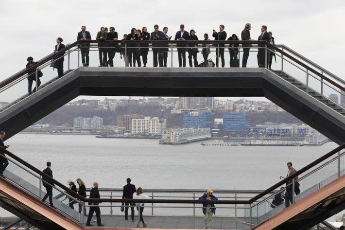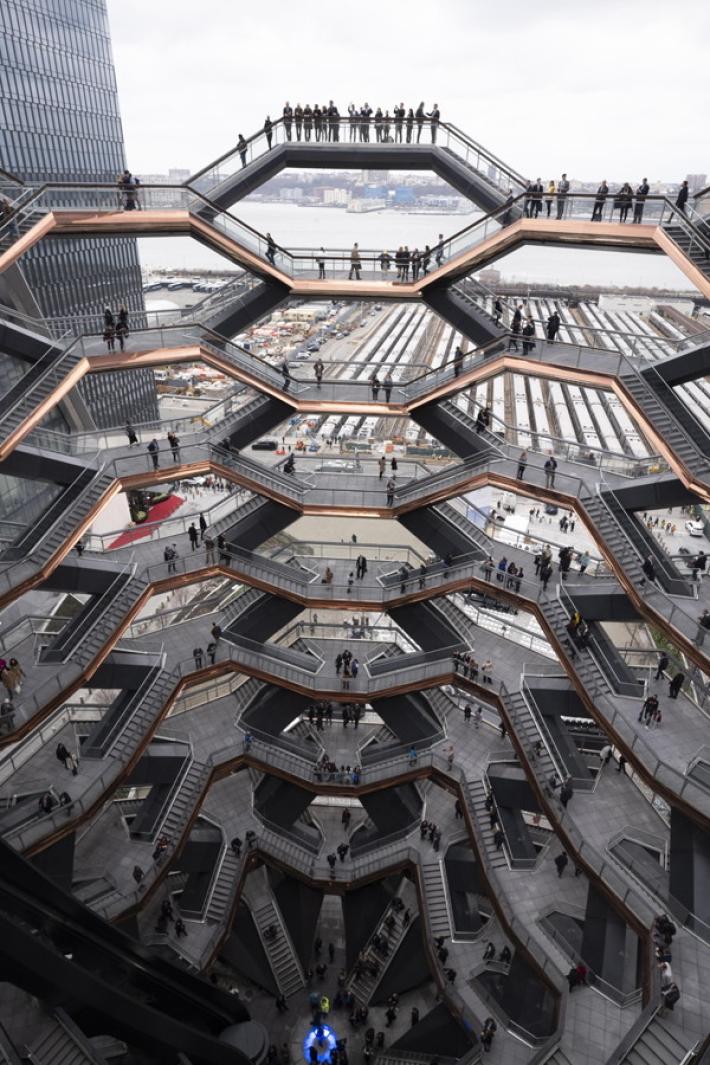 New York ha la sua torre Eiffel. "The Vessel" ha aperto ufficialmente al pubblico all’interno del nuovo complesso residenziale e commerciale Hudson Yards sull'estremo versante ovest della città. Non ha la silhouette snella e alta dell’originale francese ma rivendica il suo status di nuova attrazione di New York con i suoi 46 metri d’altezza dalla forma di nido d’ape composta da 154 rampe di scale che sembrano incastrarsi tra di loro con 2500 gradini, al punto da sembrare un intreccio di vasi sanguigni e ragion per cui il nome inizialmente scelto è stato "The Vessel".
