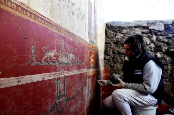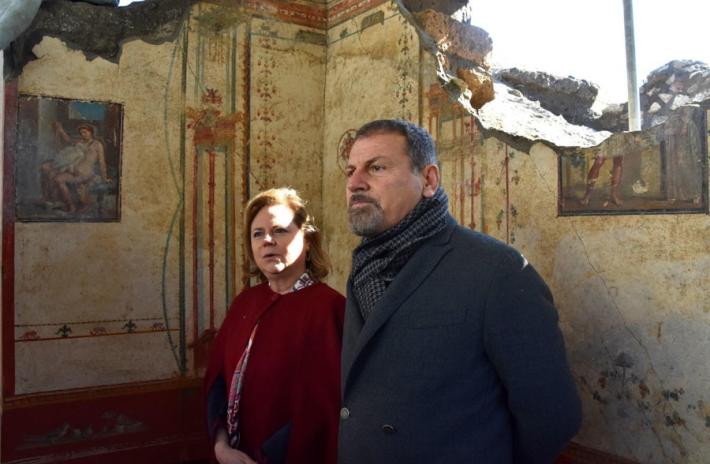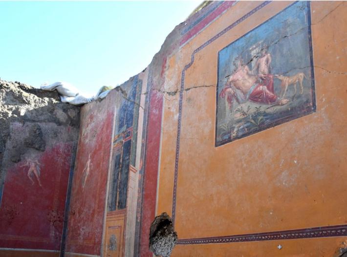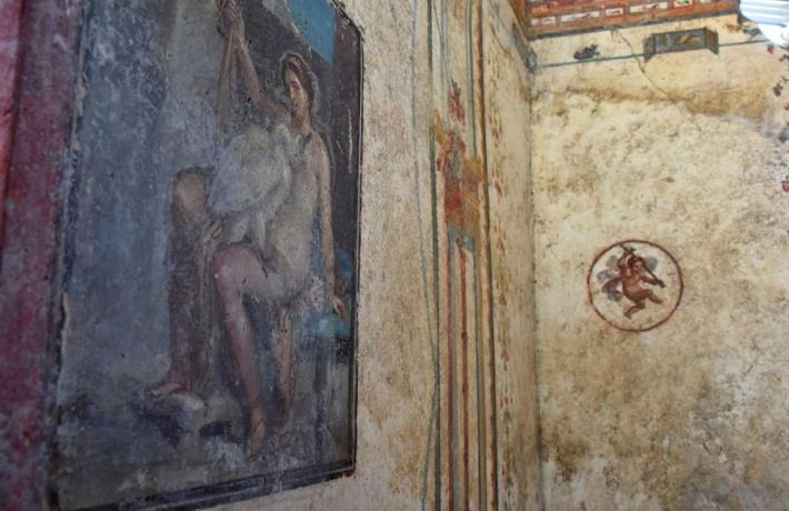 Nell’atrio della domus, dove è stato ritrovato l’affresco con il mito di Narciso «ben noto e più volte ripetuto a Pompei», spiega Massimo Osanna, «Tutto l’ambiente è pervaso dal tema della gioia di vivere, della bellezza e vanità, sottolineato anche dalle figure di menadi e satiri che, in una sorta di corteggio dionisiaco, accompagnavano i visitatori all’interno della parte pubblica della casa. Una decorazione volutamente lussuosa e probabilmente pertinente agli ultimi anni della colonia, come testimonia lo straordinario stato di conservazione dei colori."