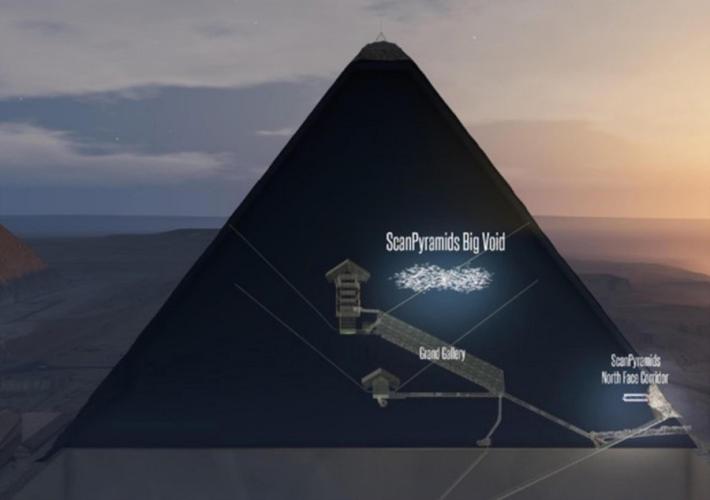 Nella grande piramide di Cheope questo è accaduto già due volte. La rilevazione di una prima anomalia aveva portato ad annunciare nell'ottobre 2016 la scoperta di un corridoio localizzato vicino alla parete nord. Ora una seconda anomalia, individuata nel marzo 2016 e studiata per un anno con diversi tipi di muografia, ha permesso di individuare questa nuova cavità: simile per dimensioni alla Grande Galleria, potrebbe essere composta da una o più strutture e potrebbe avere una disposizione orizzontale o leggermente inclinata. La sua funzione resta ancora un mistero.