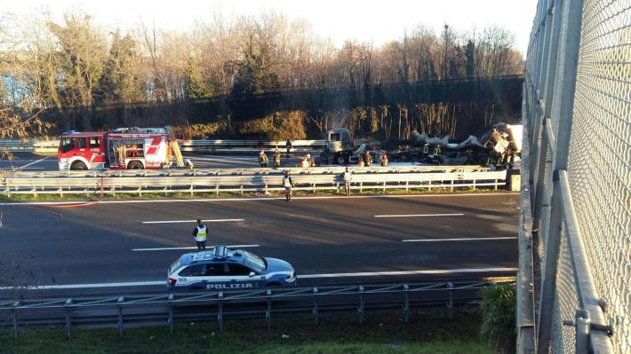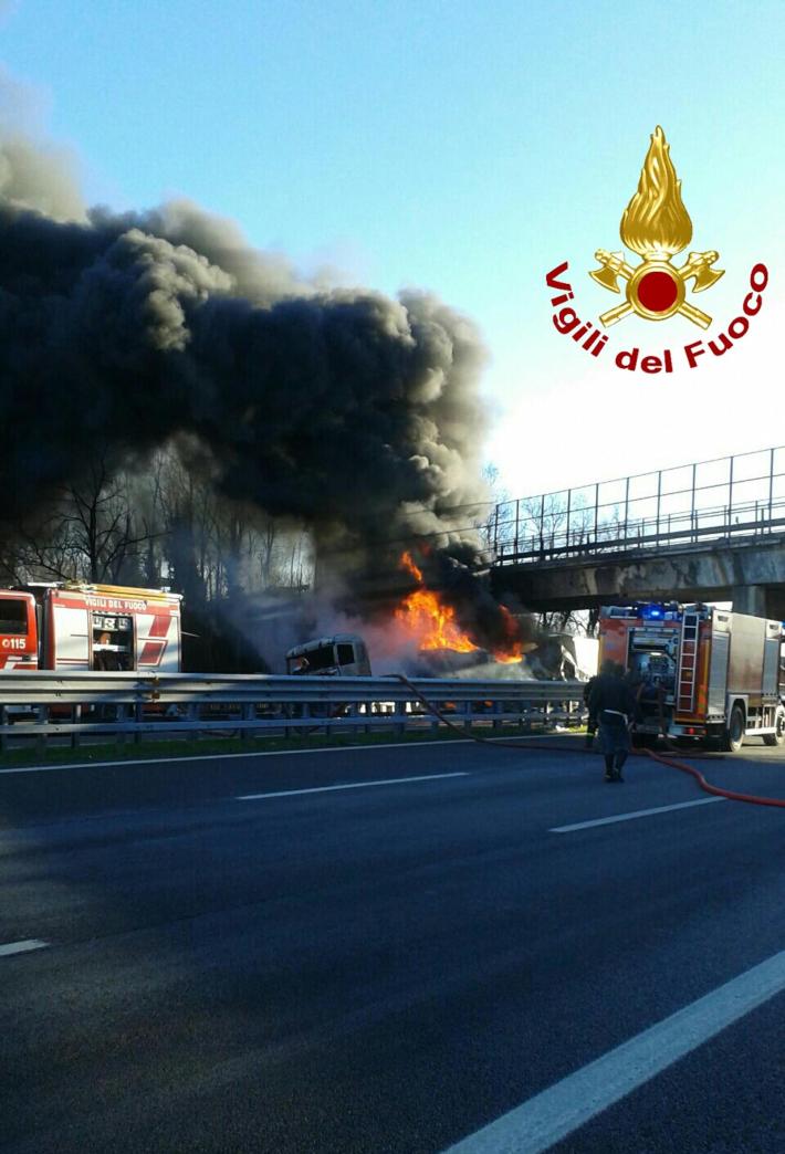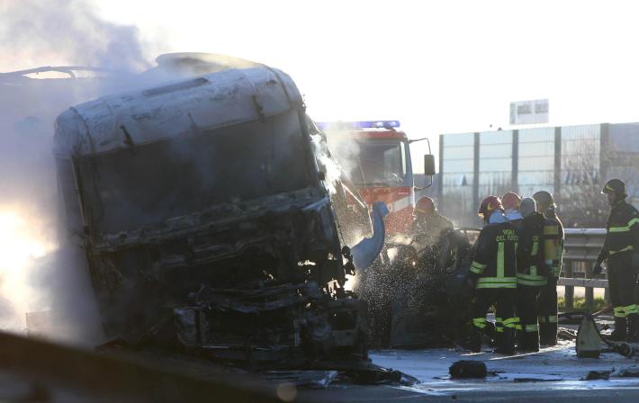 Sull’autostrada A21, tra Brescia e Manerbio, attorno alle 14 si sono scontrati un camion con cisterna piena di benzina e un altro mezzo pesante. Sono 6 le vittime dell’incidente. E' intervenuto anche l'elicottero del 118 e l'autostrada è stata chiusa durante i soccorsi. Un alto fumo nero si è alzato dal luogo dell'incidente. L'autostrada resterà chiusa tutta la notte.
