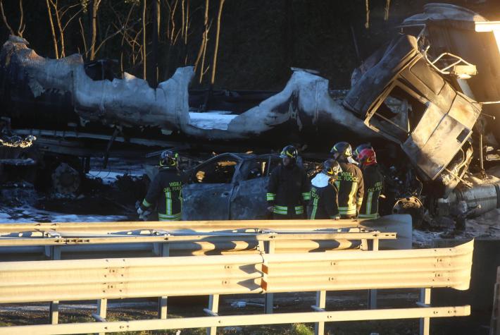 L'AUTOSTRADA RESTERA' CHIUSA TUTTA LA NOTTE. Resterà chiusa tutta la notte l'autostrada A21 nel Bresciano dove è avvenuto l’incidente nel quale sono morte 6 persone. Domattina sarà effettuato il sopralluogo dei tecnici per ricostruire l’esatta dinamica dello schianto nel quale sono rimasti coinvolti due camion, uno carico di benzina e l’altro che trasportava cereali, e una vettura con a bordo cinque persone, di cui due bambini, tutte morte carbonizzate.