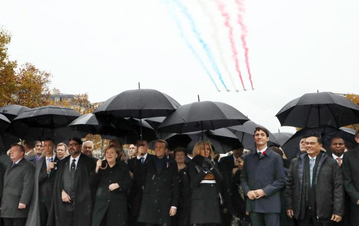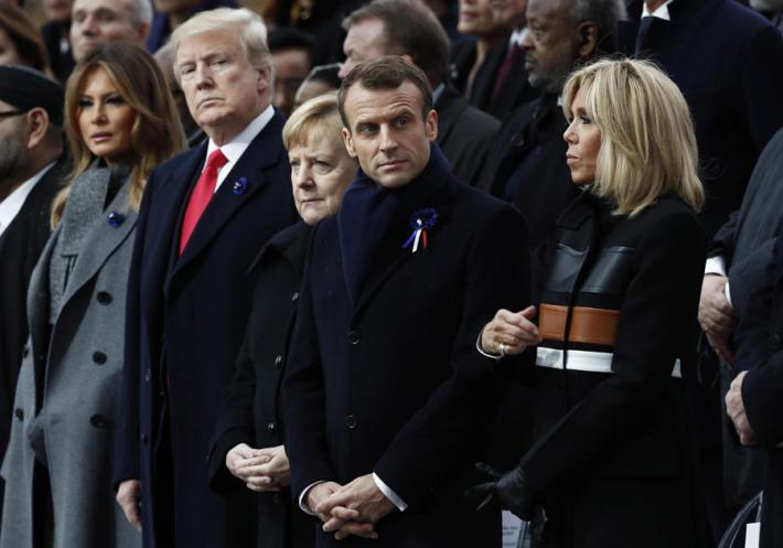 Il presidente francese Emmanuel Macron e la cancelliera Angela Merkel hanno guidato la lunga fila di capi di stato e di governo, fra i quali il presidente Sergio Mattarella, che dall’Eliseo si sono trasferiti all’Arco di Trionfo per la commemorazione solenne del centenario della firma dell’armistizio. I presidenti di Stati Uniti e Russia, Donald Trump e Vladimir Putin, si sono uniti per ultimi agli altri 70 capi di Stato.