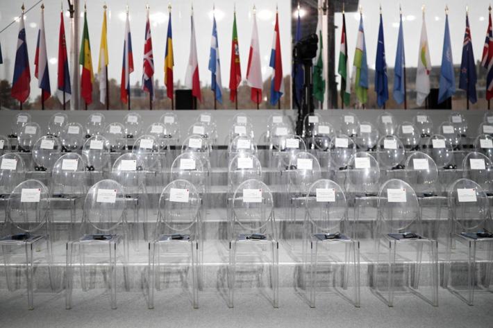 Per ultimo Vladimir Putin, a passo veloce, che ha stretto la mano a Trump facendogli il segno di «ok» con il pollice alzato. In prima fila fra i leader, Sergio Mattarella.