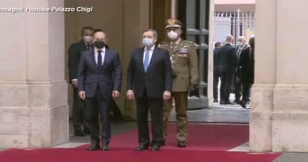 Il cancelliere tedesco accolto dal presidente del Consiglio Mario Draghi