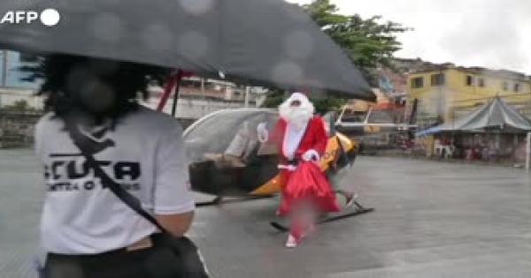 L'arrivo in elicottero e la consegna dei pacchi ai residenti