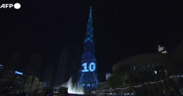 I fuochi d'artificio illuminano il Burj Khalifa, la torre piu' alta del mondo