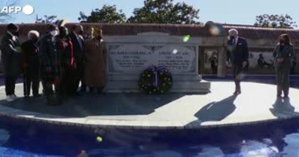 Presidente e vicepresidente davanti al monumento ad Atlanta