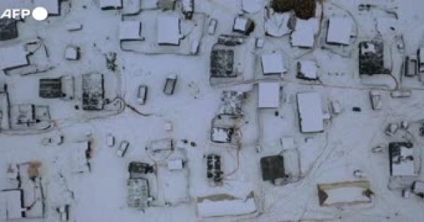 I bambini giocano con la neve ma i disagi nell'area sono forti, tra freddo e tende abbattute