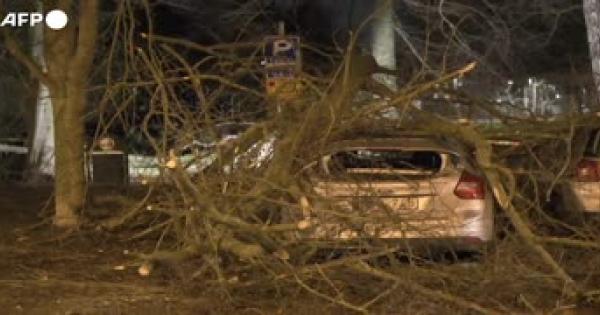Strade allagate, alberi caduti e una gru rovesciata dal vento nella citta' di Malmoe