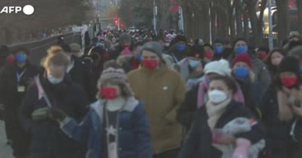 Il pubblico si dirige al Bird's Nest, lo stadio Nazionale, per l'inizio dei Giochi invernali