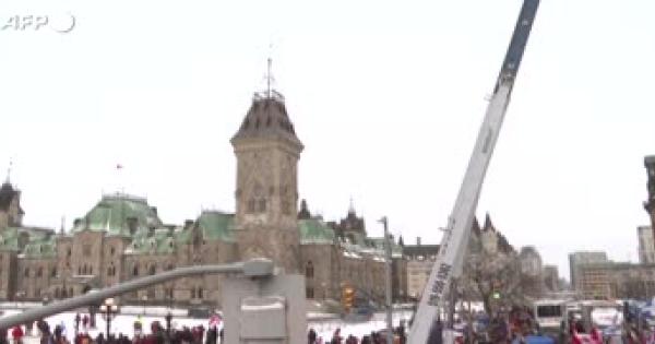 Camionisti e altri manifestanti in presidio da tre weekend presso Parliament Hill, a Ottawa
