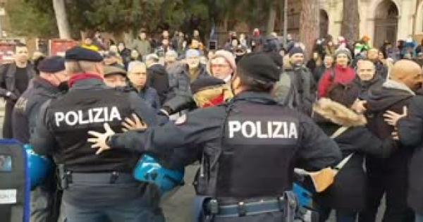 Alcune decine di manifestanti si sono riuniti davanti all'Altare della Patria