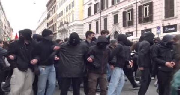 Un corteo si e' fermato in via Frangipane