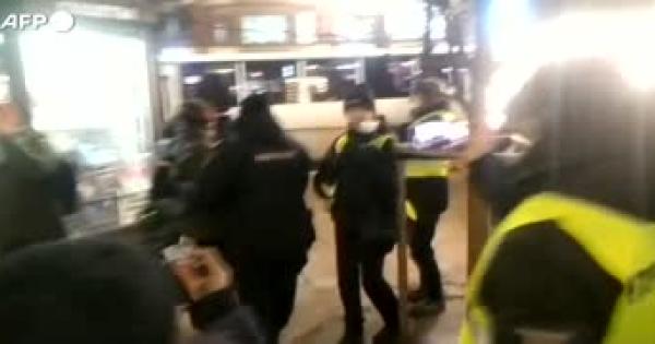 Le forze dell'ordine fanno salire le persone su bus parcheggiati nella piazza della citta'