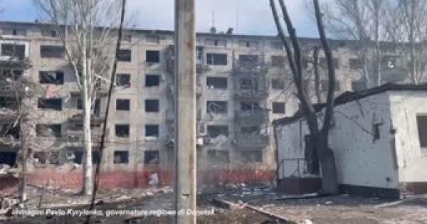 La citta' e' il capoluogo dell'oblast' di Donetsk. Colpiti un edificio residenziale e un palazzo amministrativo