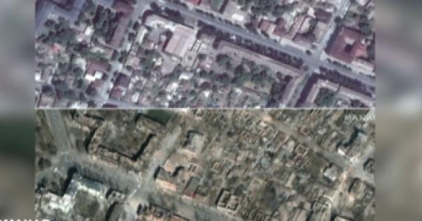 Tra gli edifici danneggiati anche il teatro colpito dai russi.