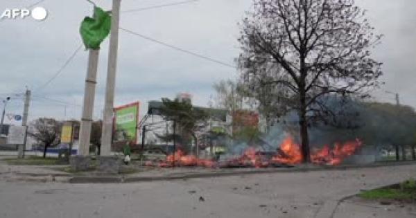 Dopo l'attacco russo edifici ancora in fiamme, macerie e carcasse di auto