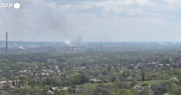 La colonna di fumo sopra la citta' del Donbass dopo gli attacchi russi