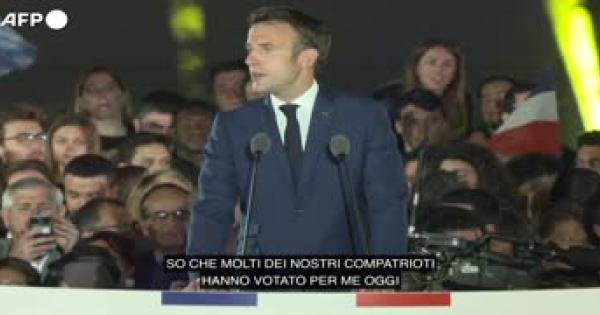 Il discorso della vittoria del presidente francese, dopo l'esito del ballottaggio contro Le Pen