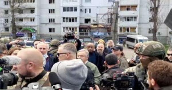 Il segretario generale dell'Onu ha fatto tappa a Borodyanka, tra gli edifici distrutti dalla guerra