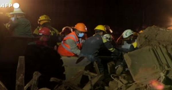 Soccorritori al lavoro tra detriti e macerie dopo il parziale crollo dell'hotel Saratoga