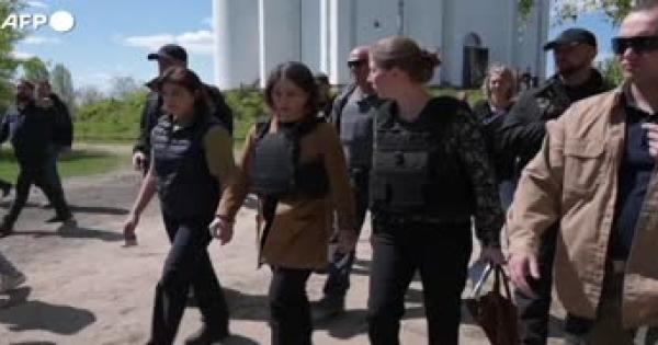 La ministra degli Esteri tedesca in visita nel luogo del massacro dei civili