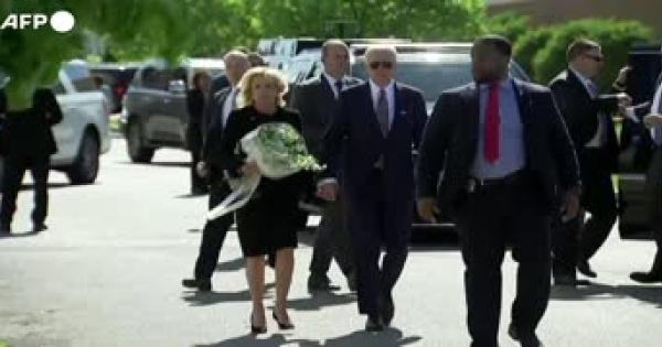 Il presidente e Jill depongono un mazzo di fiori e incontrano alcuni familiari delle vittime