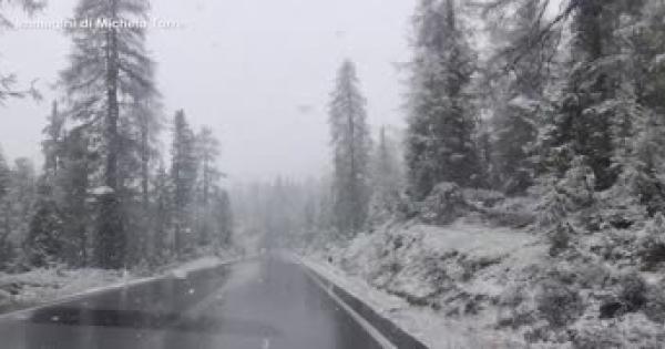 Il Passo di Valparola imbiancato da un soffice strato di neve