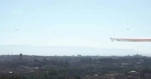 Il sorvolo e' avvenuto contestualmente all'omaggio di Mattarella all'Altare della patria