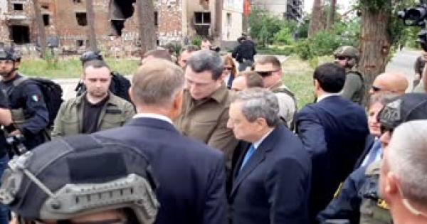 I tre leader europei accompagnati dal sindaco Oleh Bondar