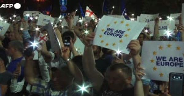 In piazza dopo che Commissione ha rinviato lo status di candidata Ue