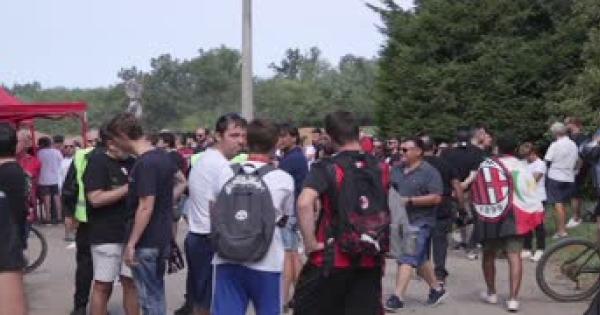 Centinaia di tifosi rossoneri hanno accolto la squadra a Milanello con cori e fumogeni