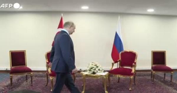 Il presidente russo arriva per primo, quello turco si presenta quasi un minuto dopo
