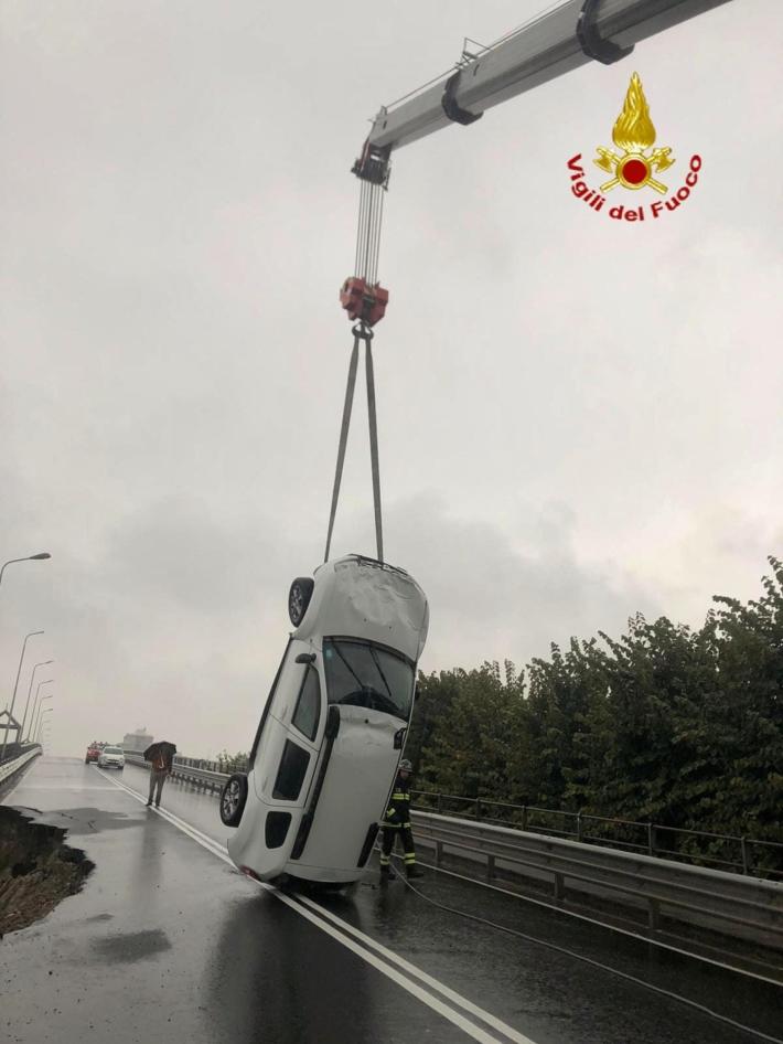 Sul posto la polizia municipale e i vigili del fuoco per verificare i danni e per valutare le cause del cedimento, se strutturali o legate alla pioggia. Il cavalcavia è chiuso al traffico.