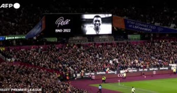 Una foto della leggenda del calcio campeggia sul maxischermo
