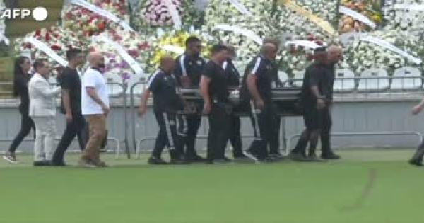 Il carro funebre con la bara e' arrivato a Vila Belmiro, dove si tiene la veglia di 24 ore