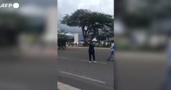 Gli agenti presidiano l'area del Parlamento dopo l'assalto dei bolsonaristi