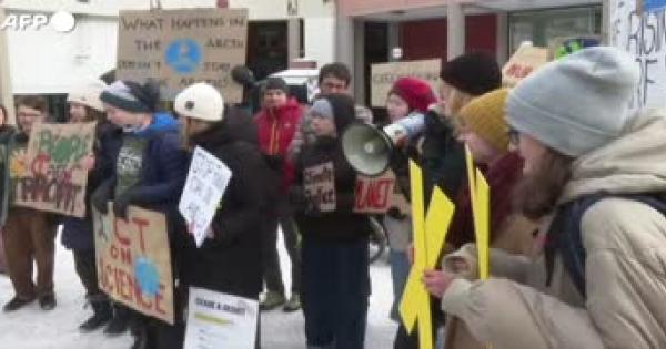L'attivista svedese manifesta nell'ultimo giorno del World Economic Forum in Svizzera