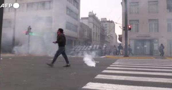 Polizia lancia gas lacrimogeni sui manifestanti durante la marcia a Lima